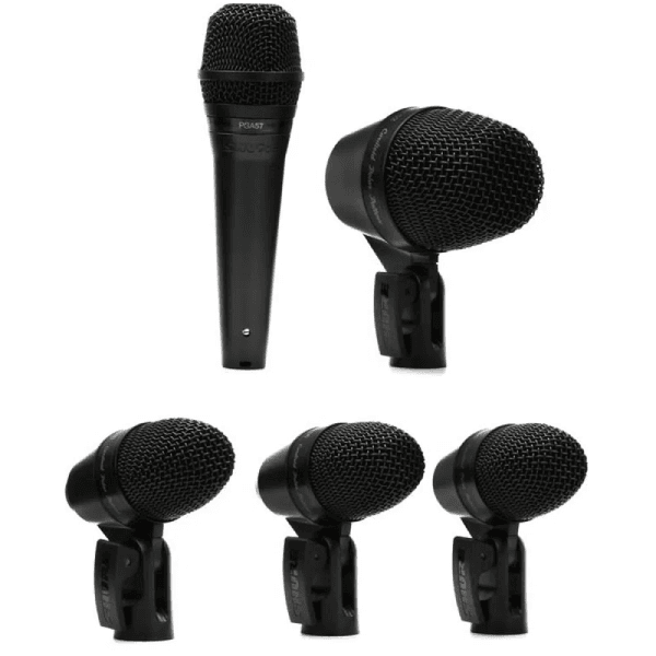 El Kit de Micrófono para PGADRUMKIT5 es un paquete esencial de micrófonos de calidad profesional diseñado para proporcionar un sonido excelente para la presentación y grabación. En el PGADRUMKIT5 se incluyen un micrófono PGA52, tres micrófonos PGA56 y un micrófono de instrumento PGA57, junto con tres soportes de clip para micrófono, cinco cables XLR a XLR y un estuche de transporte.El Kit de Micrófono de Bombo PGADRUMKIT5 es un paquete esencial de micrófonos de calidad profesional diseñado para proporcionar un sonido excelente para la presentación y grabación de bombo de micrófono cerrado, caja y timbal. En el PGADRUMKIT5 se incluyen un micrófono de bombo PGA52, tres micrófonos de bombo PGA56 y un micrófono de instrumento PGA57, junto con tres soportes de bombo y cinco cables XLR-XLR y un estuche de transporte.